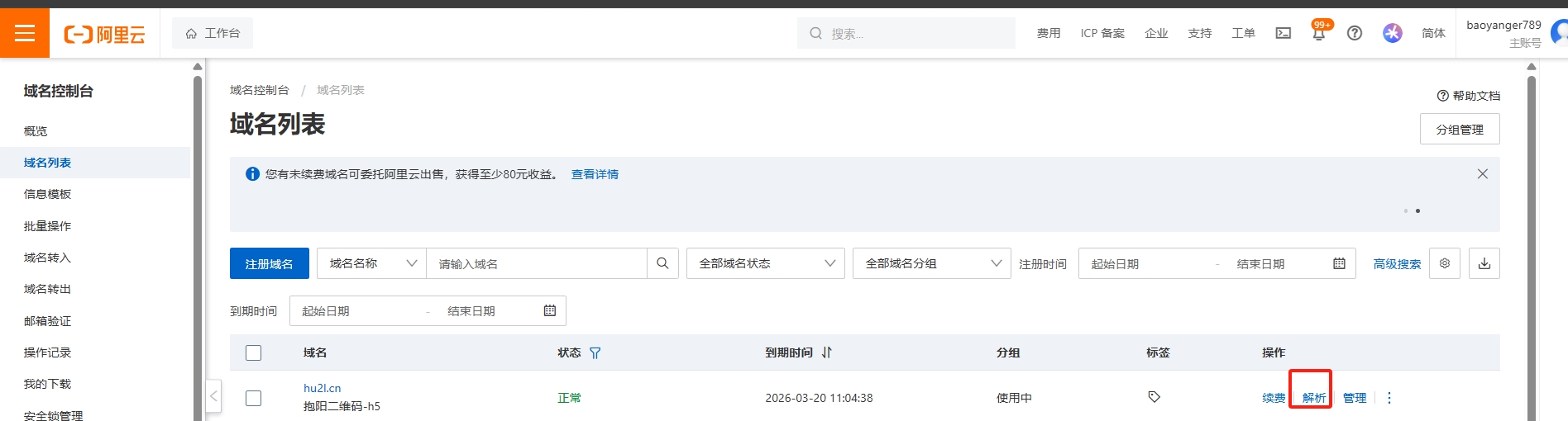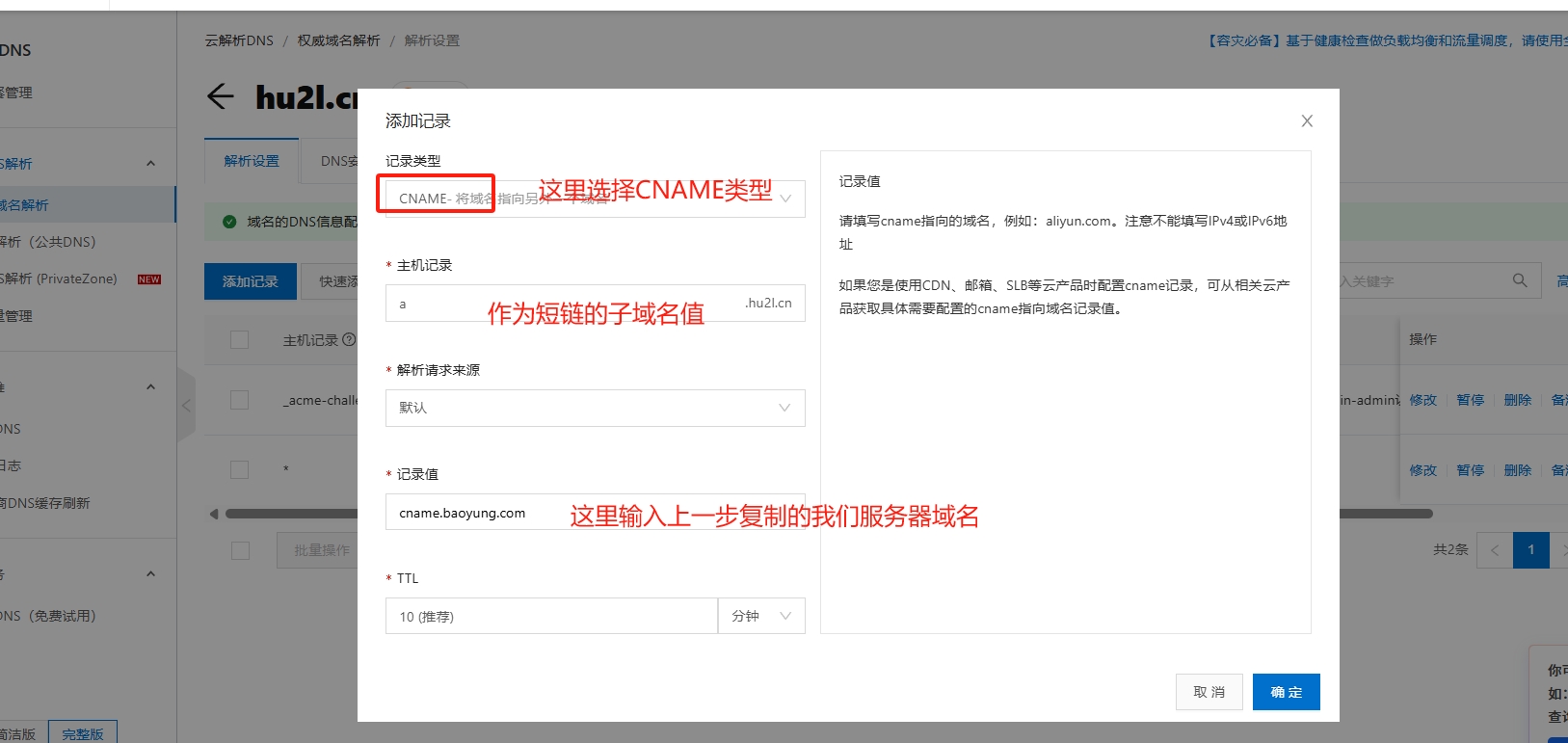 三、到域名服务商配置CNAME,下面以阿里云为例